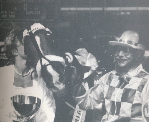 Helle Kronkvist sad i sulkyen bag Hairos, da John K. gik æresrunden efter hestens største triumf; sejren i Copenhagen Cup 1987. (Foto: Burt Seeger)