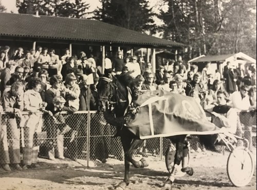 Den første gang, at publikum for alvor lagde mærke til Kjærsgaard, var da han i par med Nattergalen (indv.) slog tophoppen Napalm, der havde sin ejer Karl Laursen i sulkyen. (Foto: Privatfoto)