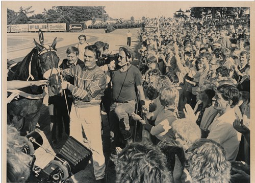 Odin Vang med ejeren Carl Ejler Rasmussen efter sejren i Dansk Trav Kriterium 1987.