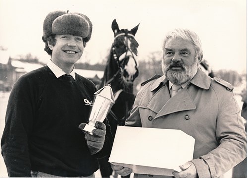 Walther Kaiser-Hansen i vindercirklen i selskab med den internationale stjerne My Nevele.
